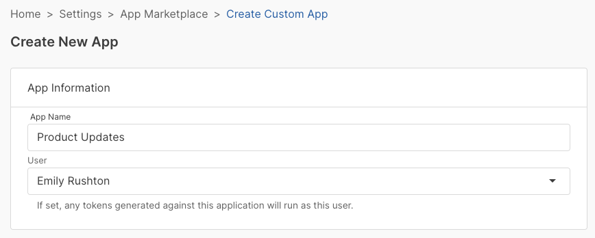 You can now link a user to a custom app, enabling the app's Bearer token to operate as that user for API operations.
