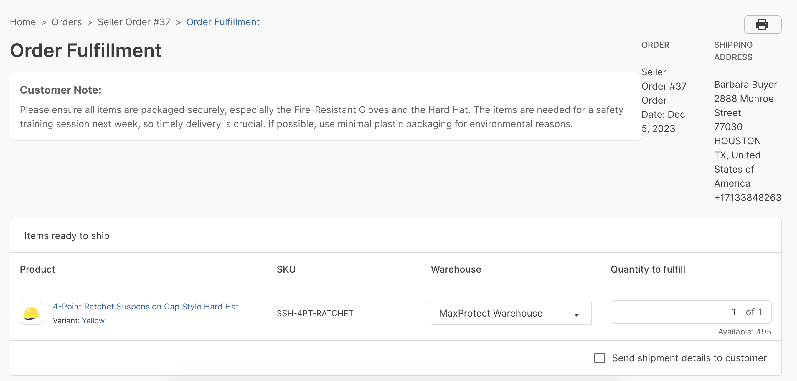 Buyer-entered order notes will now appear at the top of the fulfillment page, allowing users to easily view additional information when handling the shipping and fulfillment. Notes will also be visible when printing the fulfillment page.