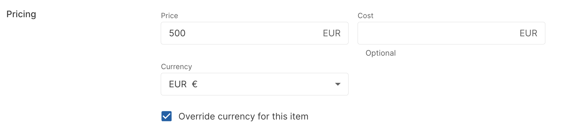 Once you enable multiple currencies, when your sellers add products and variants their prices default to the currency selected on their seller account. However, both sellers and marketplace operators can override the currency to list prices in a different currency.