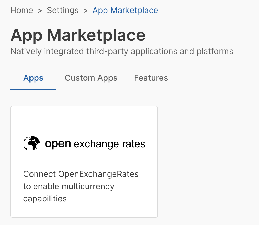 - From your Traide dashboard, go to Settings -> Apps -> Open Exchange Rates.
